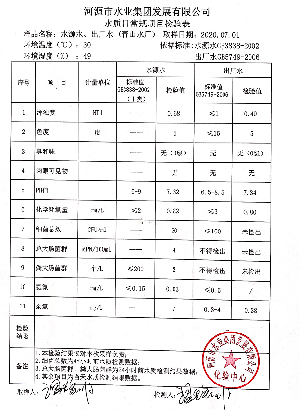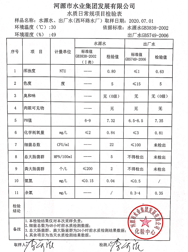 2020年7月1日水質(zhì)檢驗報告