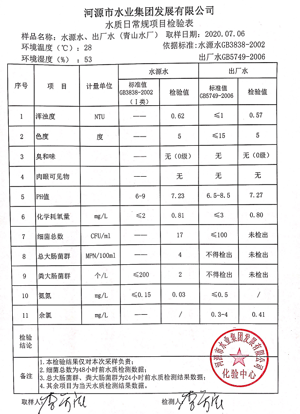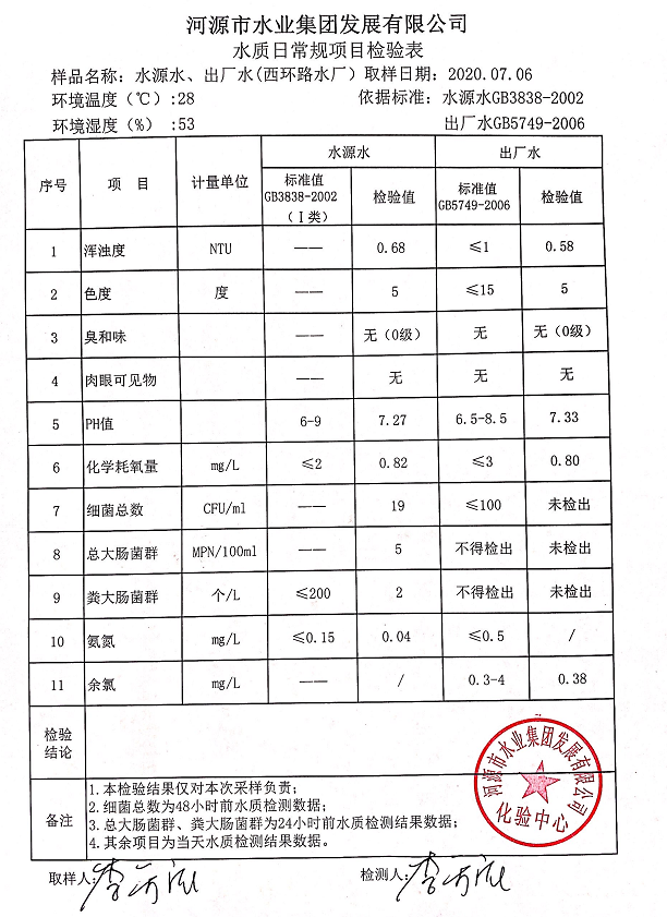 2020年7月6日水質(zhì)檢驗報告