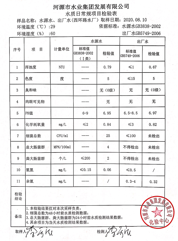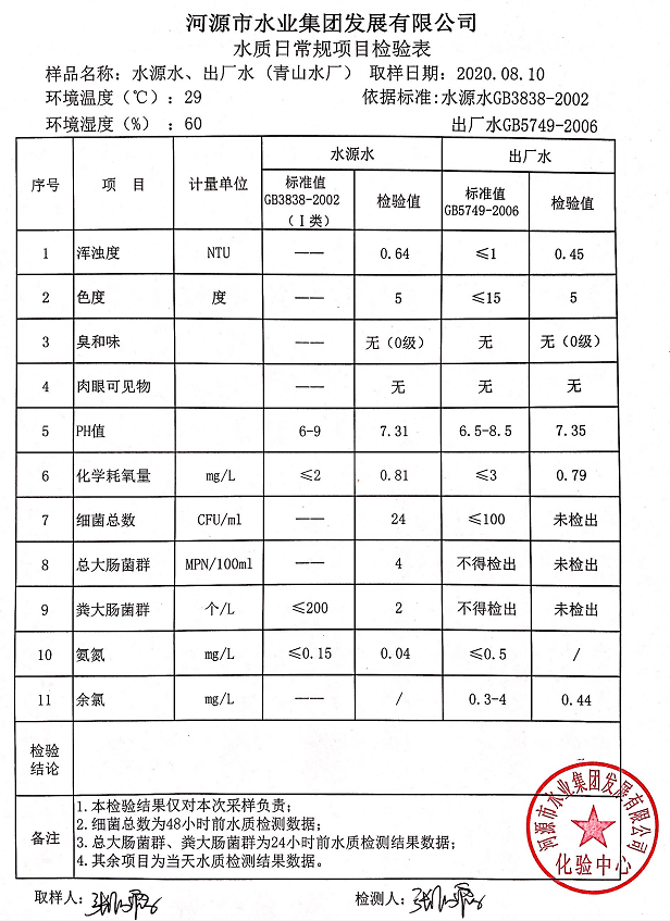 2020年8月10日水質(zhì)檢驗報告