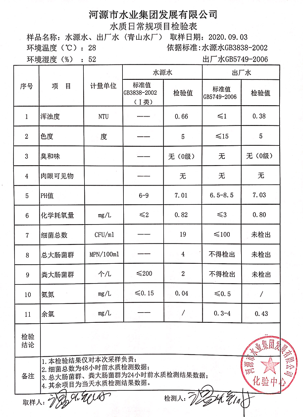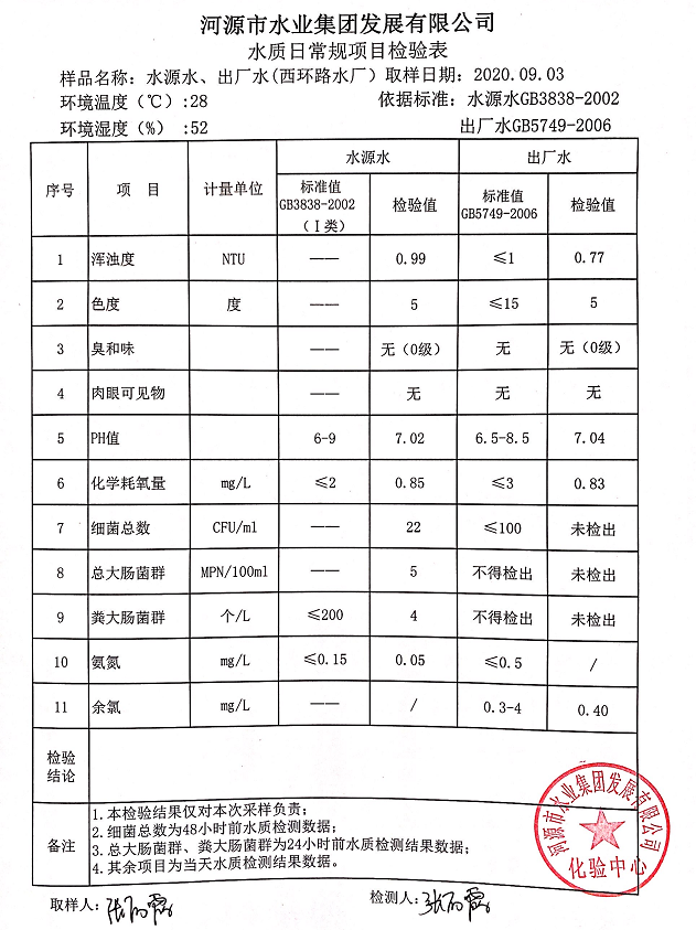 2020年9月3日水質(zhì)檢驗報告