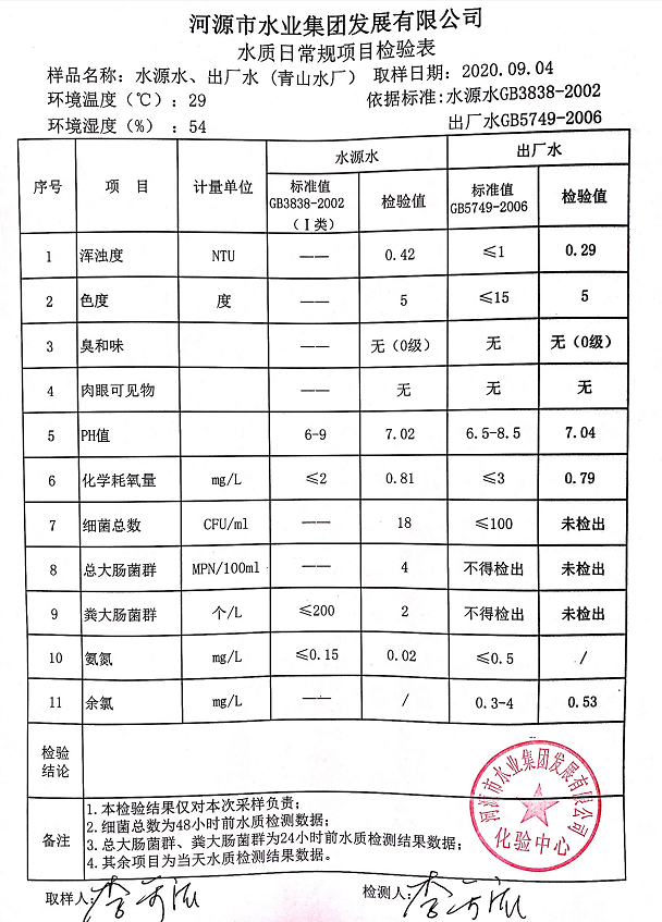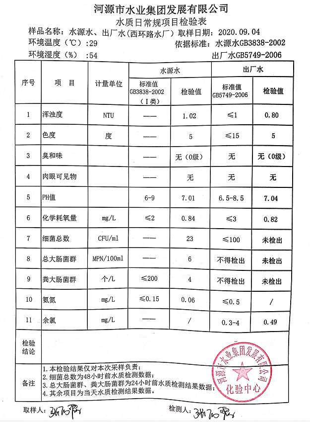 2020年9月4日水質(zhì)檢驗報告