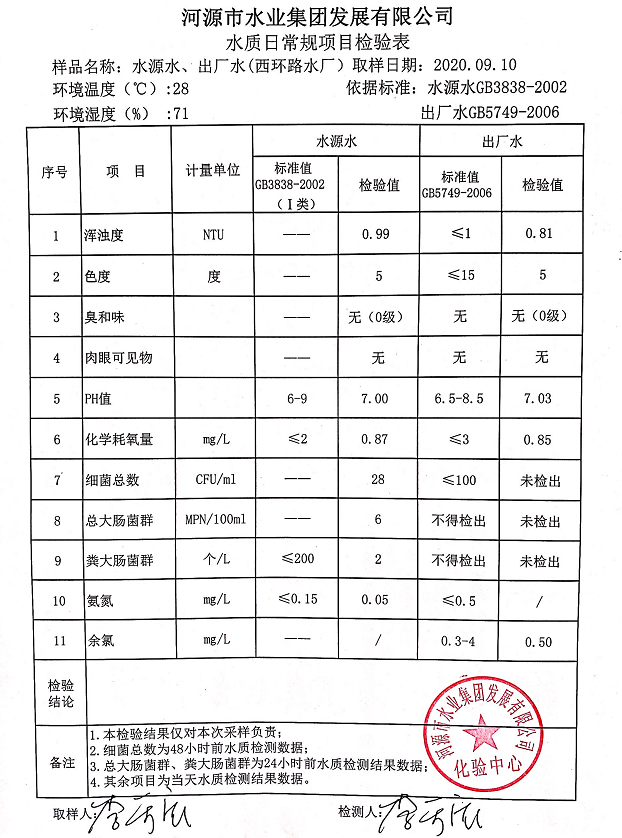 2020年9月10日水質(zhì)檢驗報告