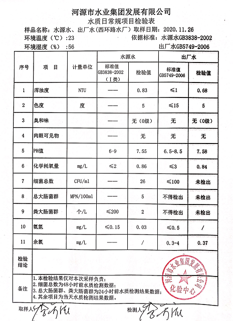 2020年11月26日水質(zhì)檢驗報告