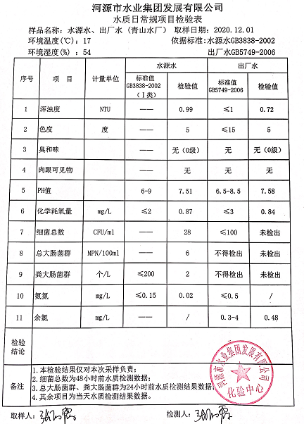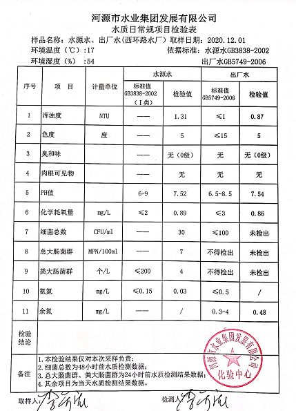 2020年12月1日水質(zhì)檢驗報告