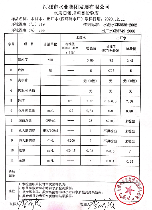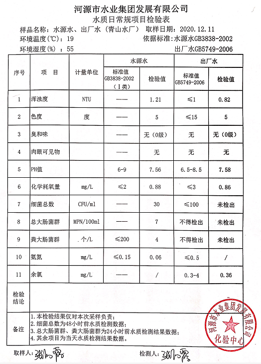 2020年12月11日水質(zhì)檢驗報告