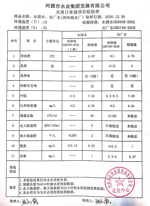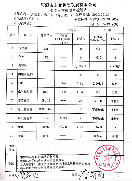 2020年12月30日水質(zhì)檢驗報告