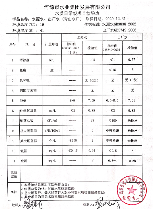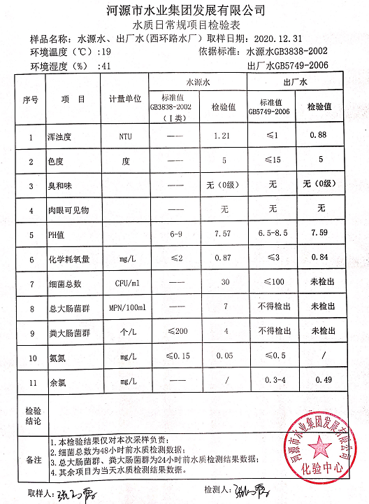 2020年12月31日水質(zhì)檢驗報告