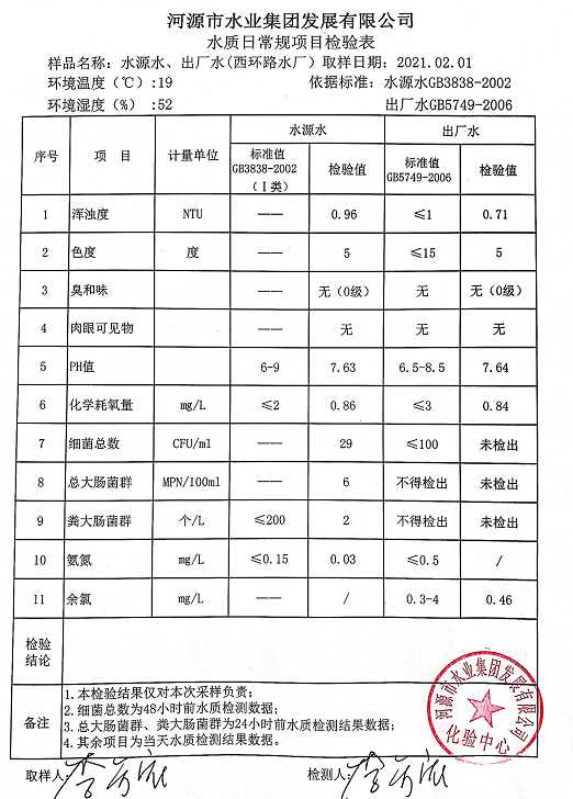 2021年2月1日水質(zhì)檢驗報告