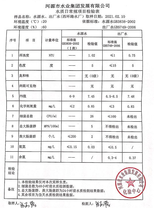 2021年2月10日水質(zhì)檢驗報告