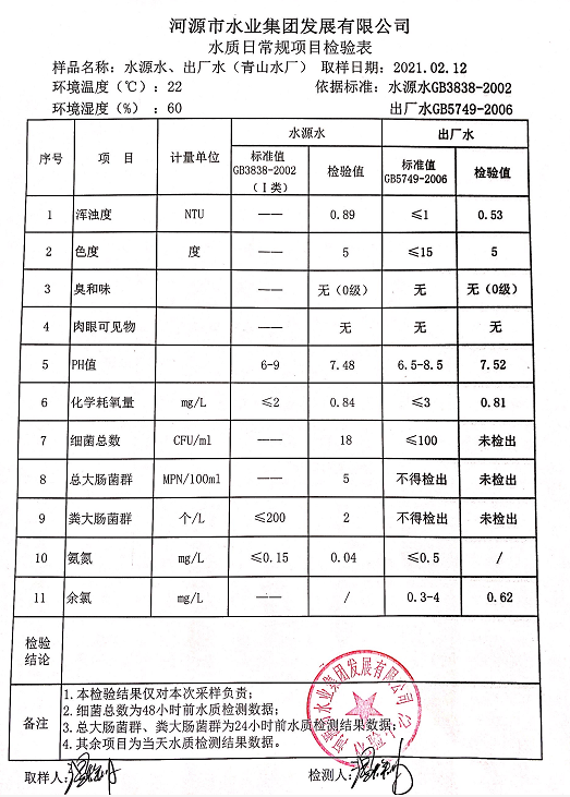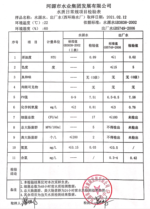 2021年2月12日水質(zhì)檢驗報告