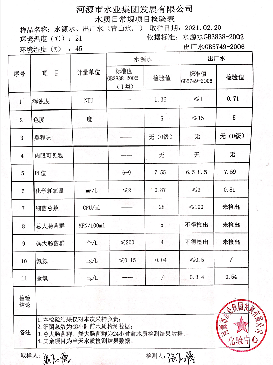 2021年2月20日水質(zhì)檢驗報告