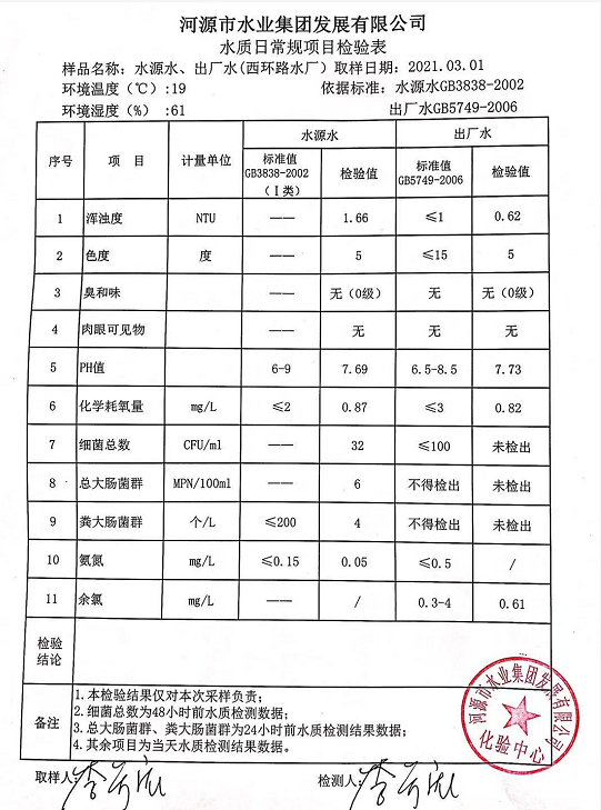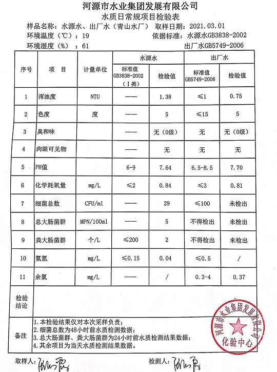 2021年3月1日水質(zhì)檢驗報告