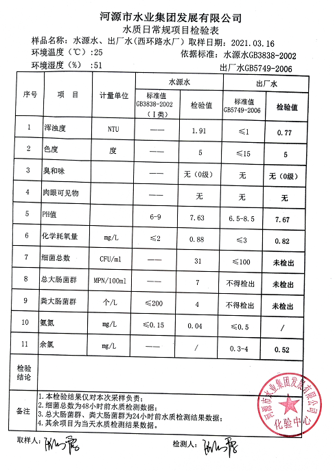 2021年3月16日水質(zhì)檢驗報告