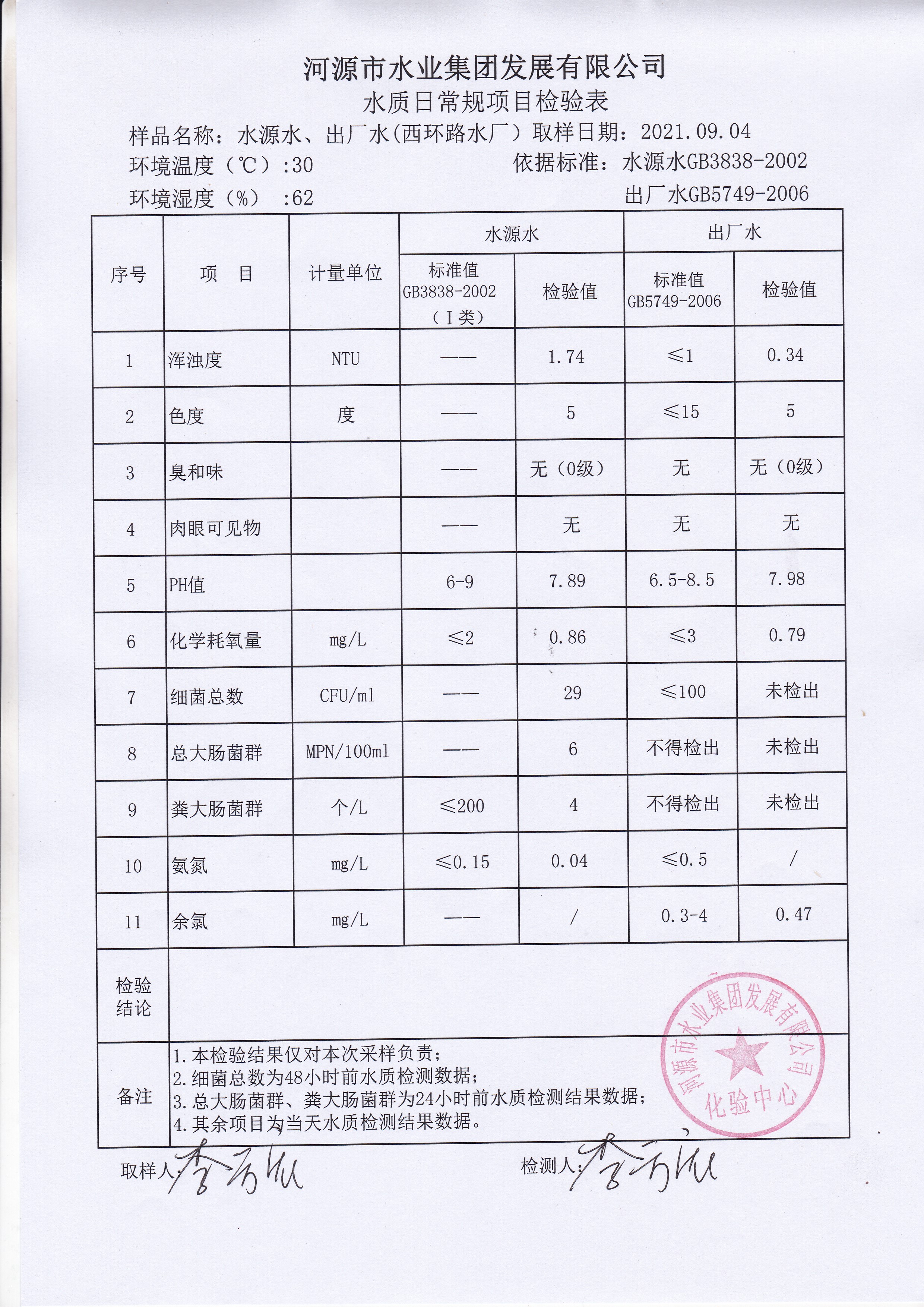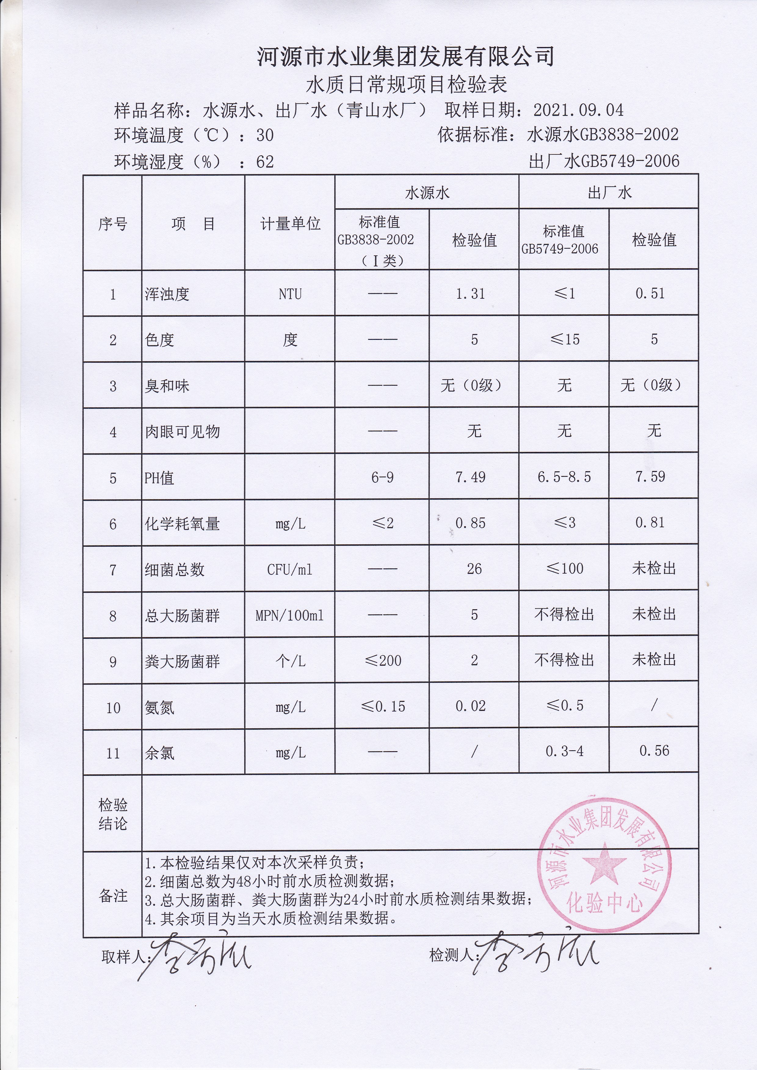 2021年9月4日水質(zhì)檢驗報告 ???