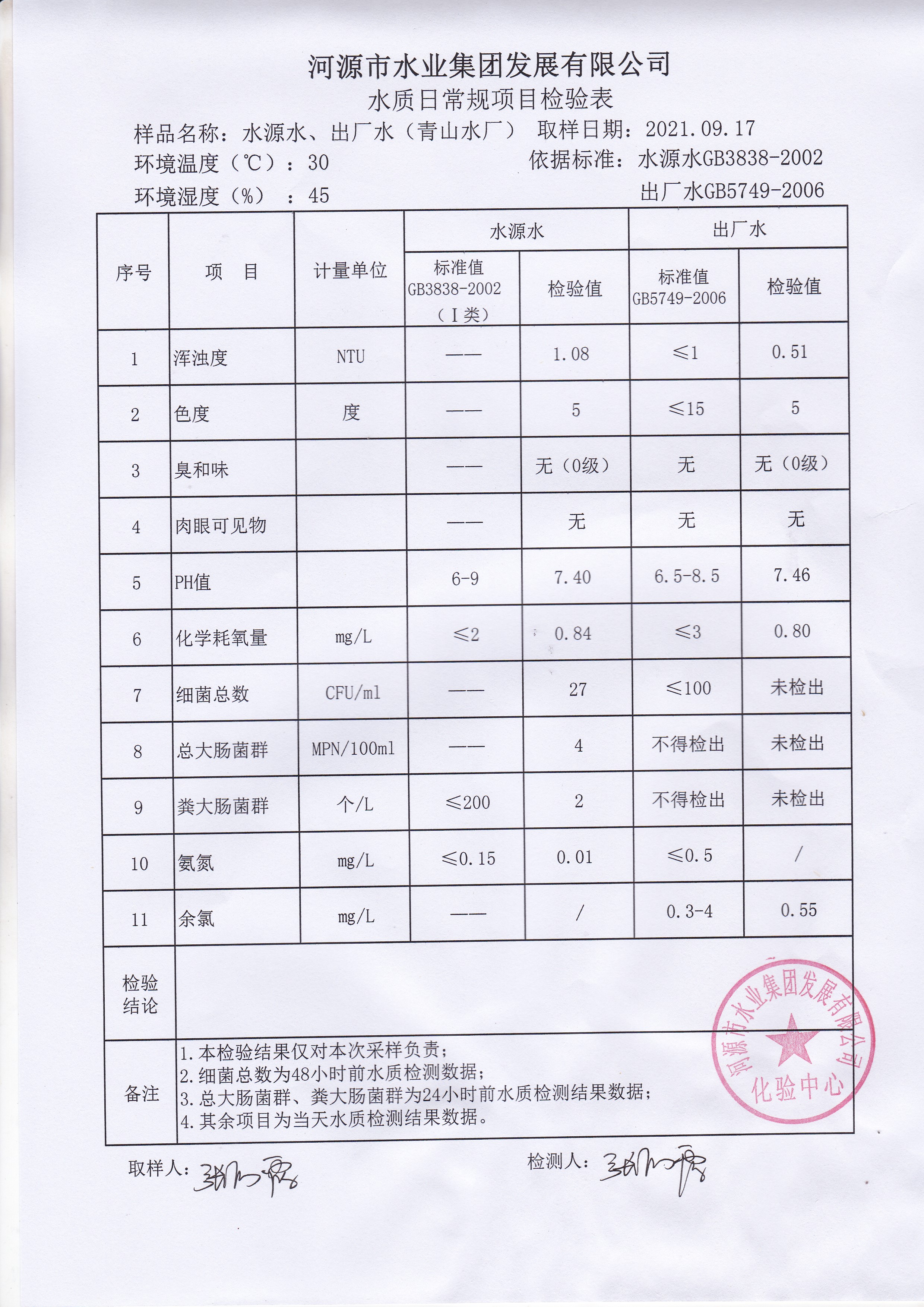 2021年9月17日水質(zhì)檢驗報告 ??