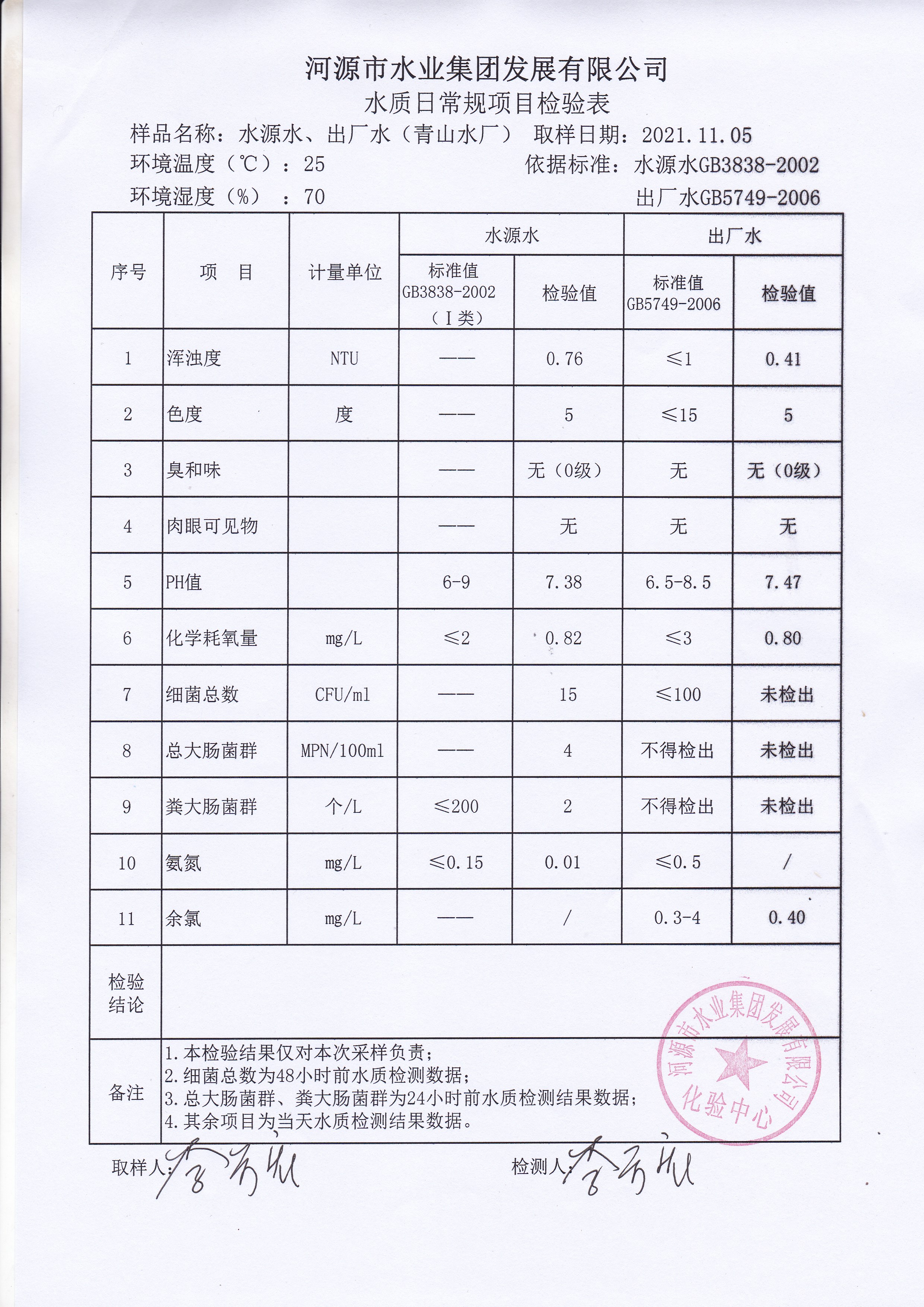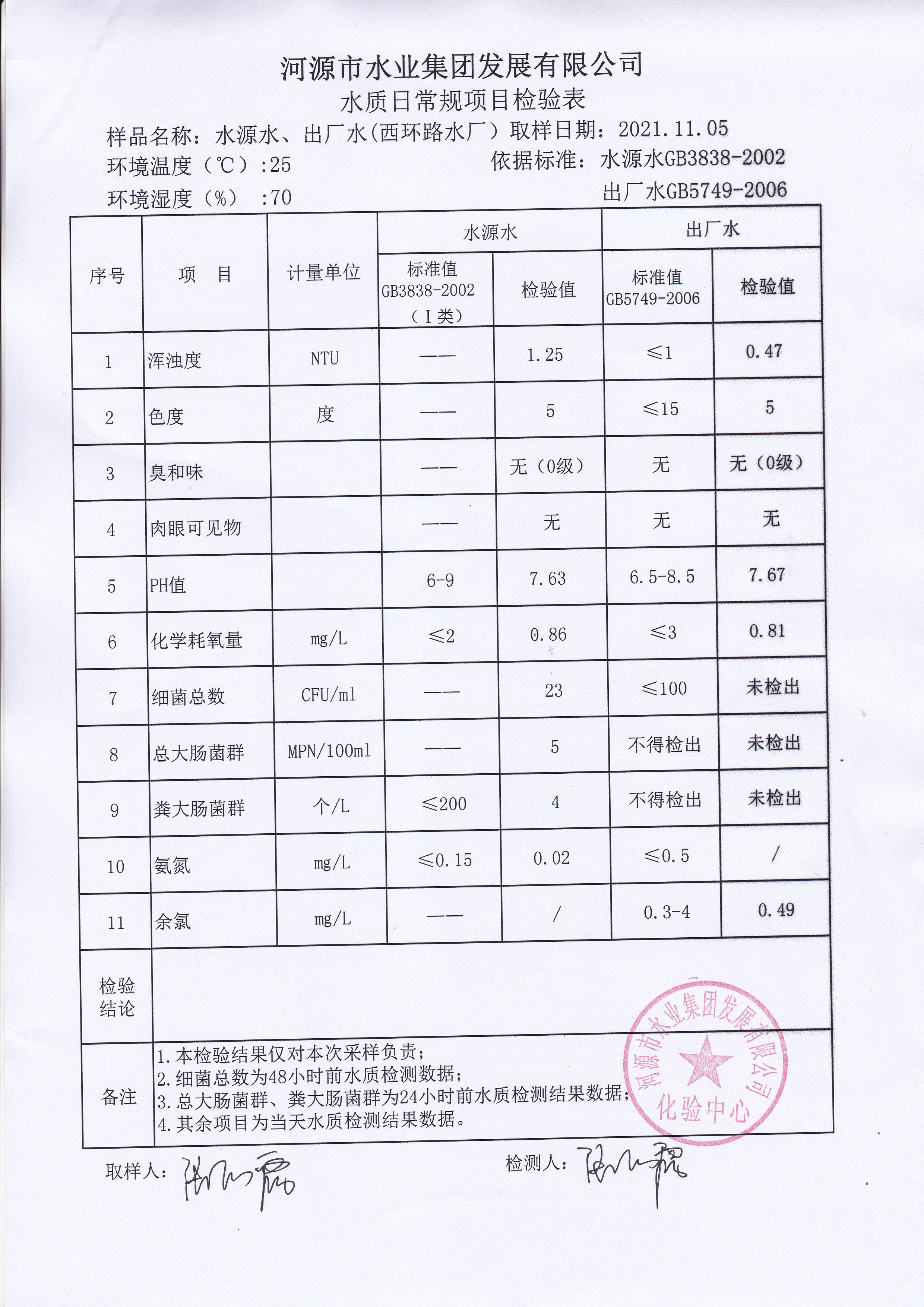 2021年11月5日水質(zhì)檢驗報告