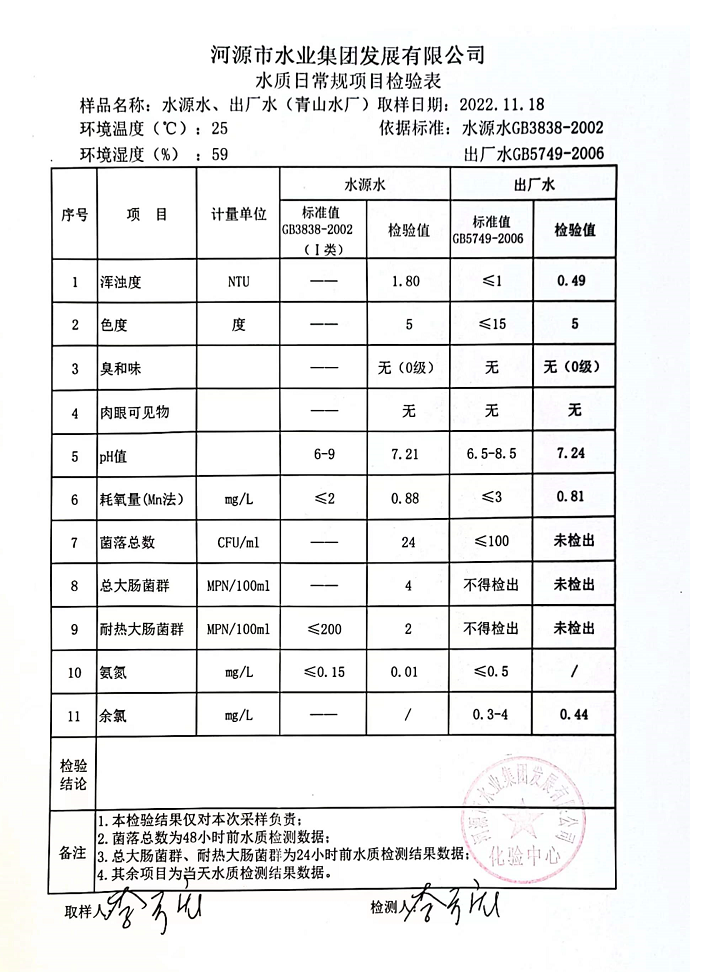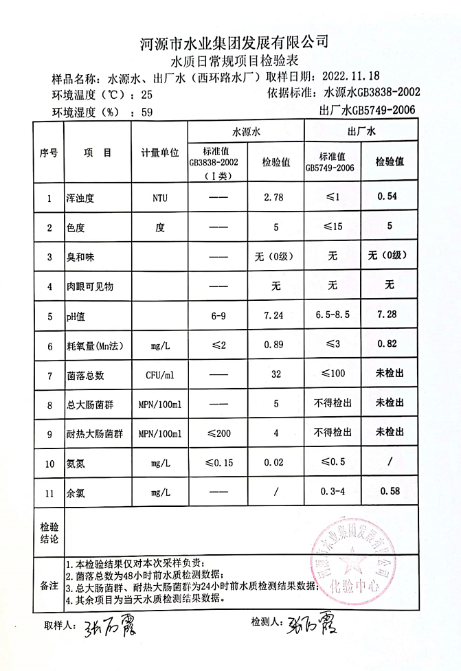 2022年11月18日水質(zhì)檢驗報告