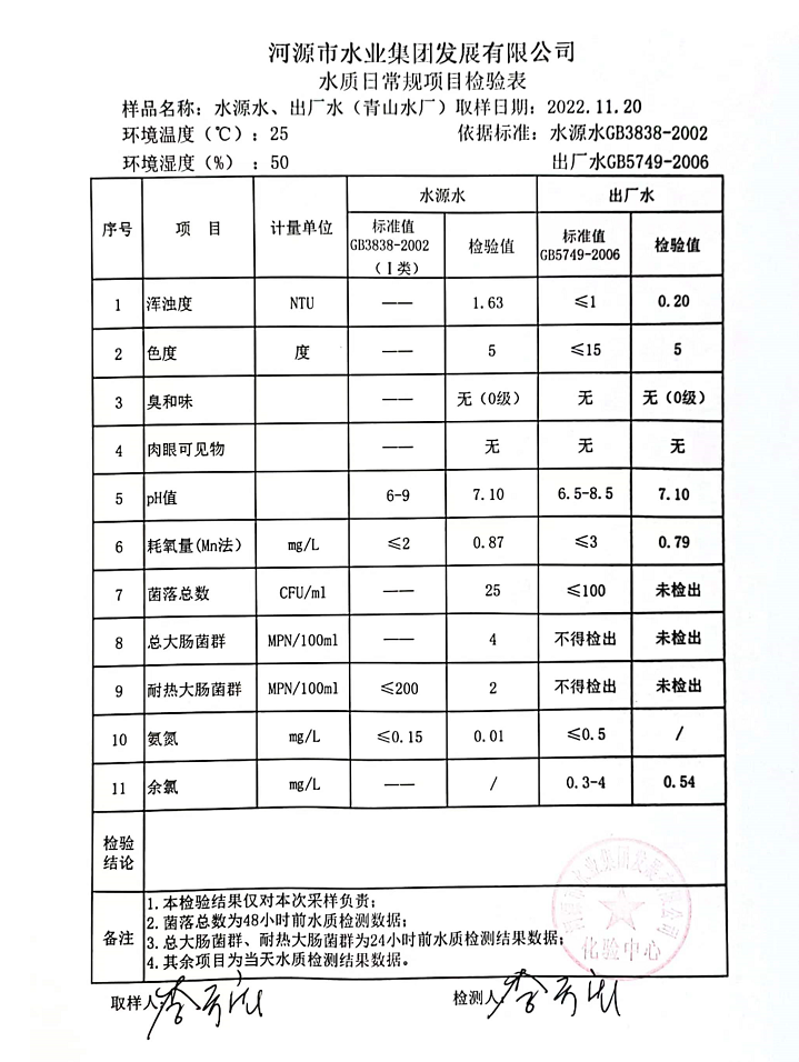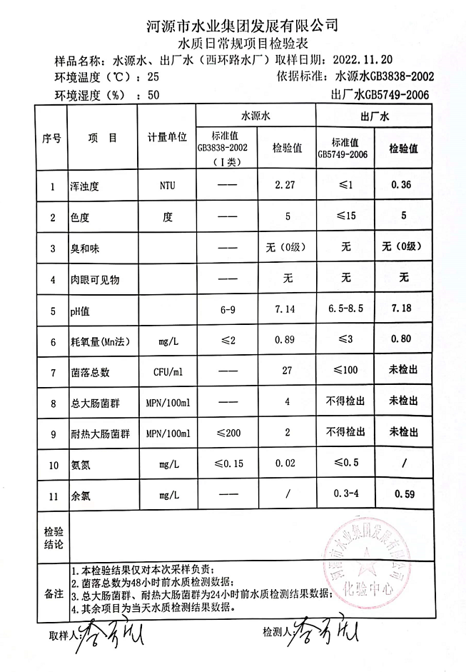 2022年11月20日水質(zhì)檢驗報告