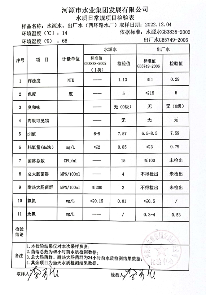 2022年12月4日水質(zhì)檢驗報告