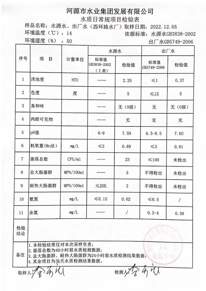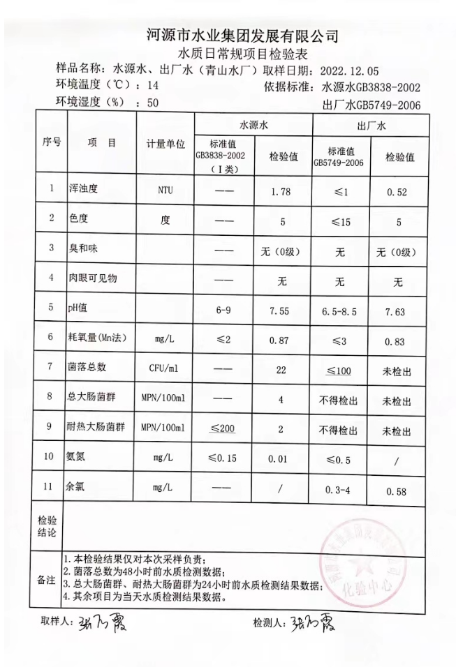 2022年12月5日水質(zhì)檢驗報告