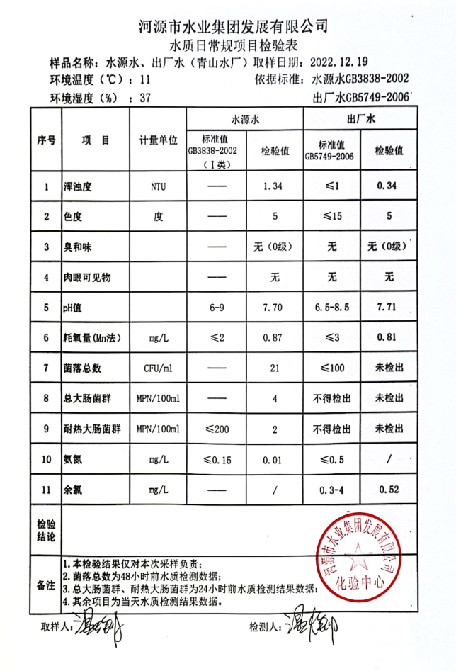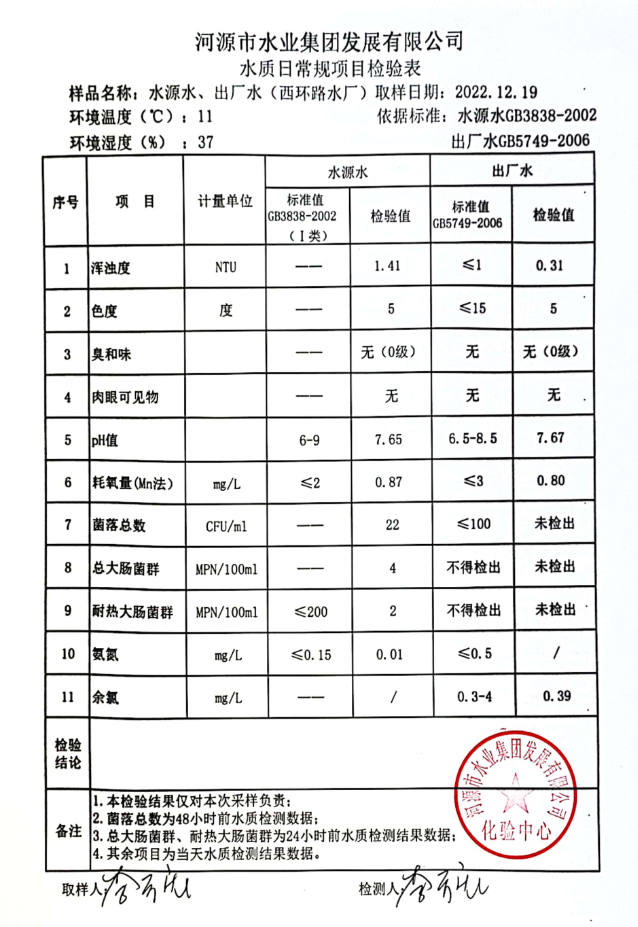 2022年12月19日水質(zhì)檢驗報告