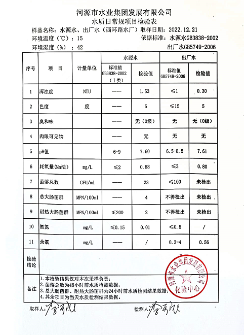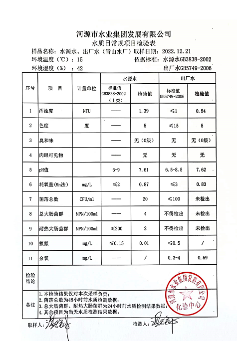 2022年12月21日水質(zhì)檢驗報告