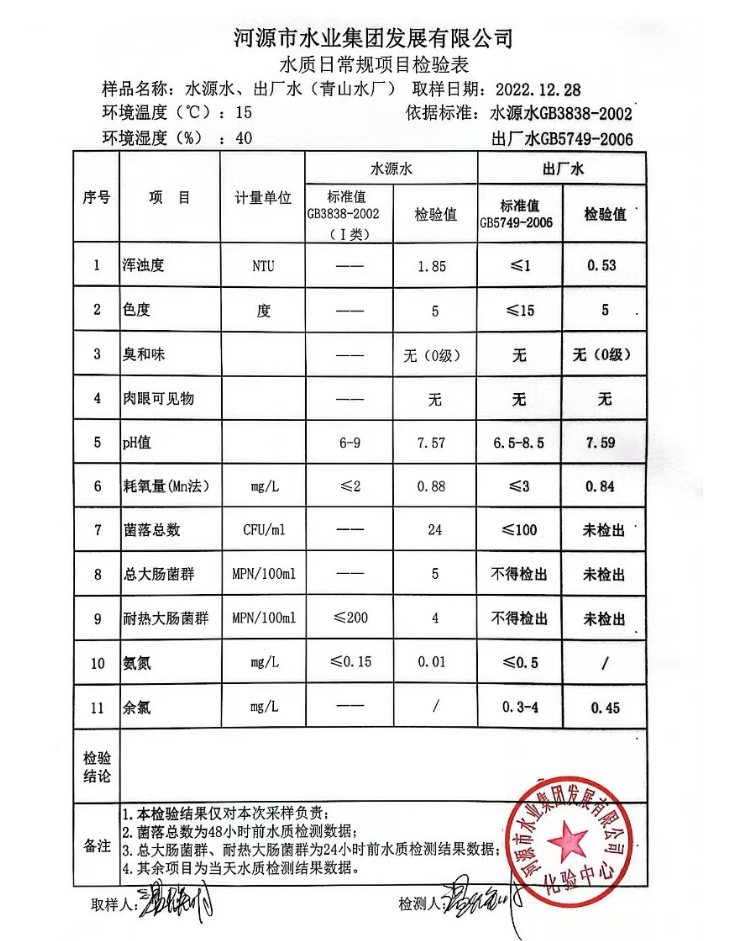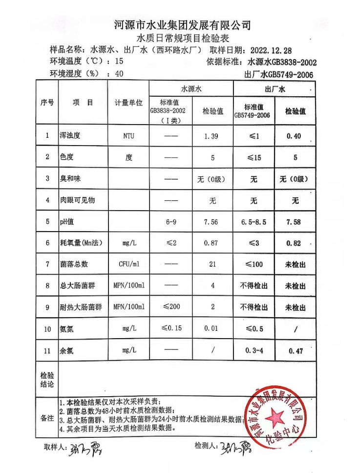 2022年12月28日水質(zhì)檢驗報告