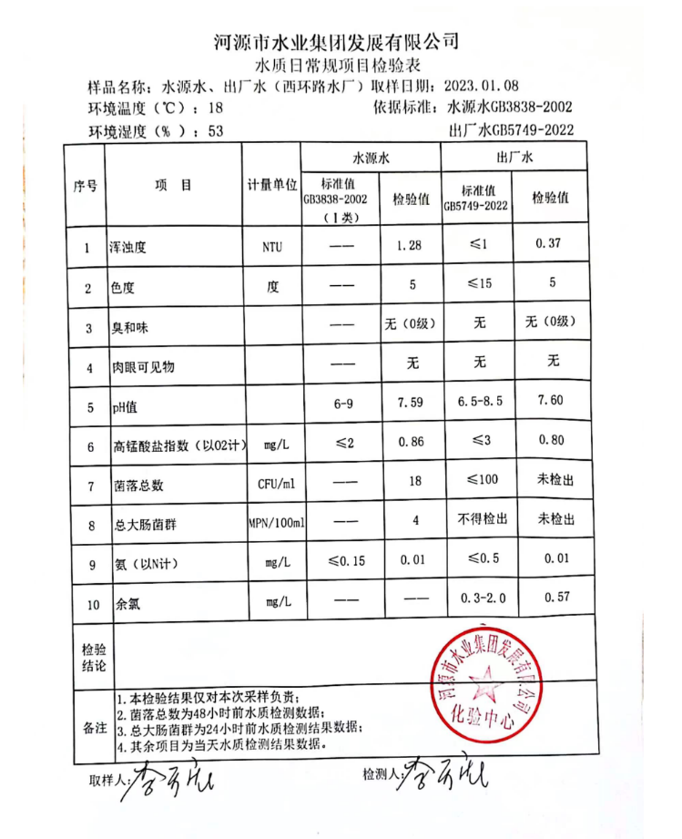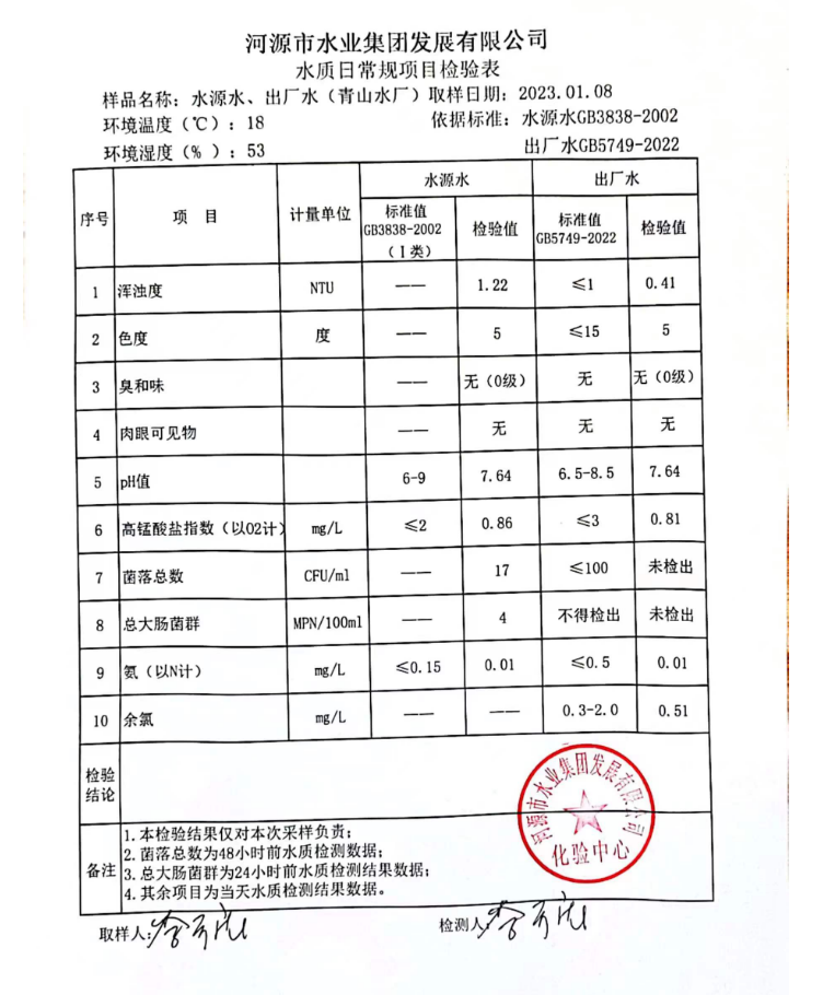 2023年1月8日水質(zhì)檢驗報告