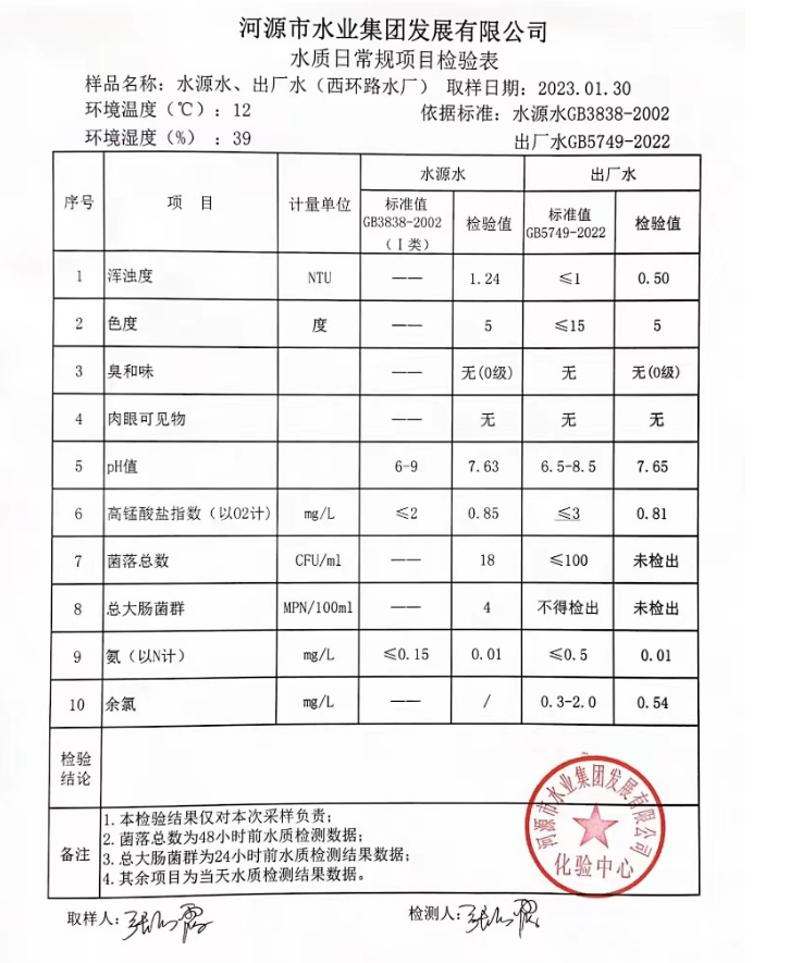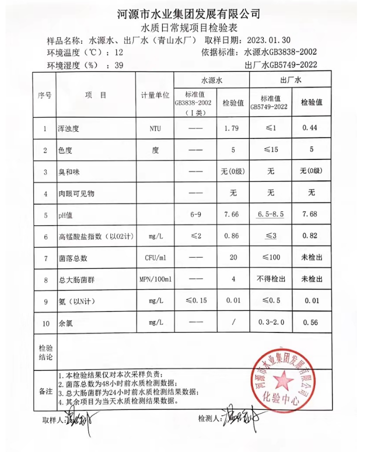 2023年1月30日水質(zhì)檢驗報告