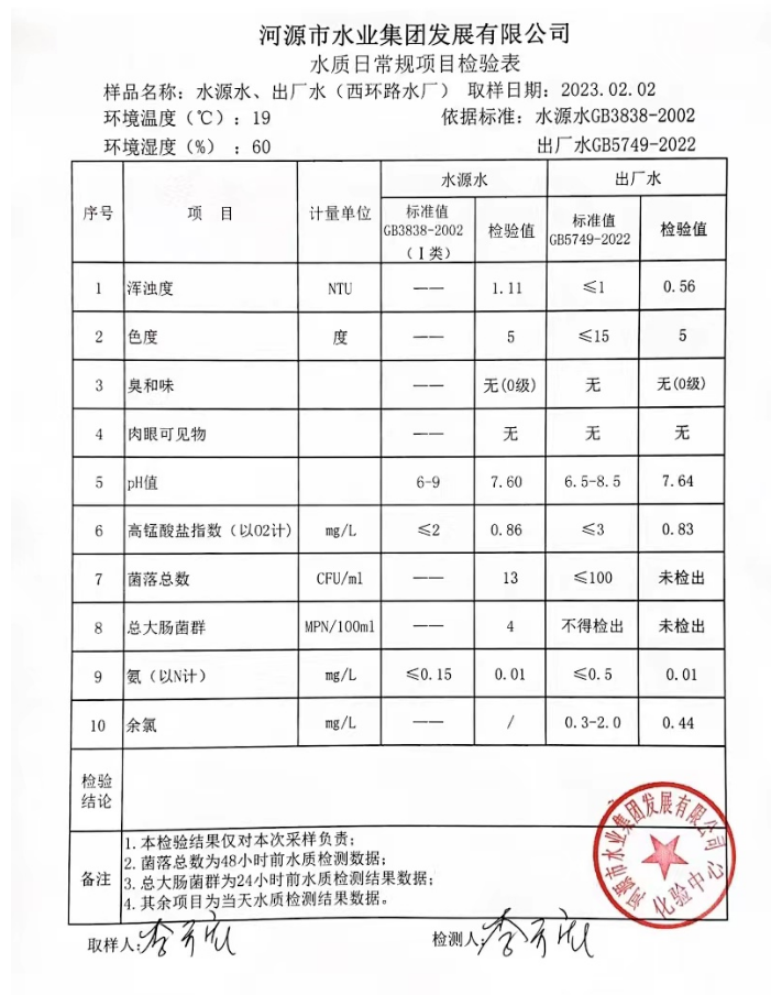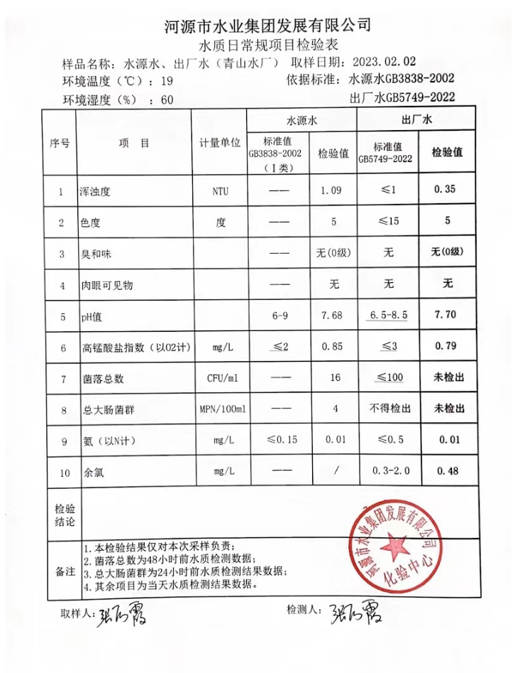 2023年2月2日水質(zhì)檢驗報告