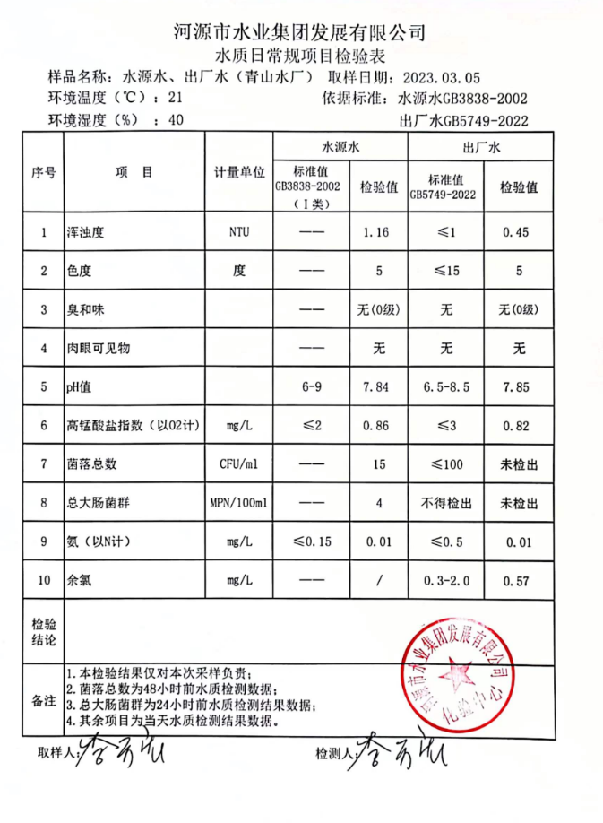 2023年3月5日水質(zhì)檢驗報告
