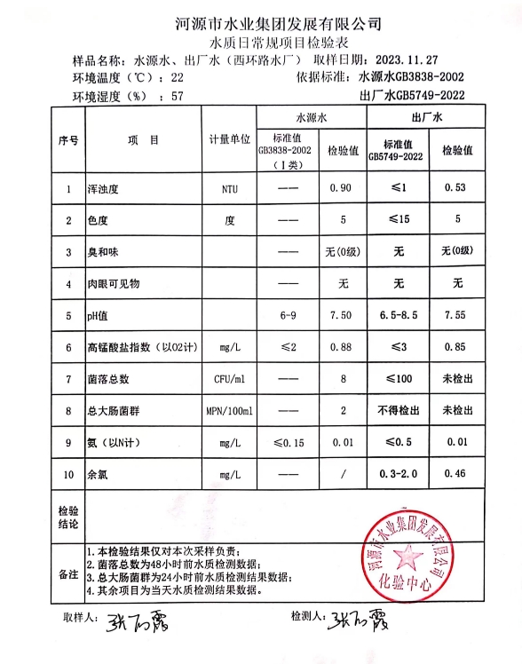 2023年11月27日水質(zhì)檢驗報告 ???