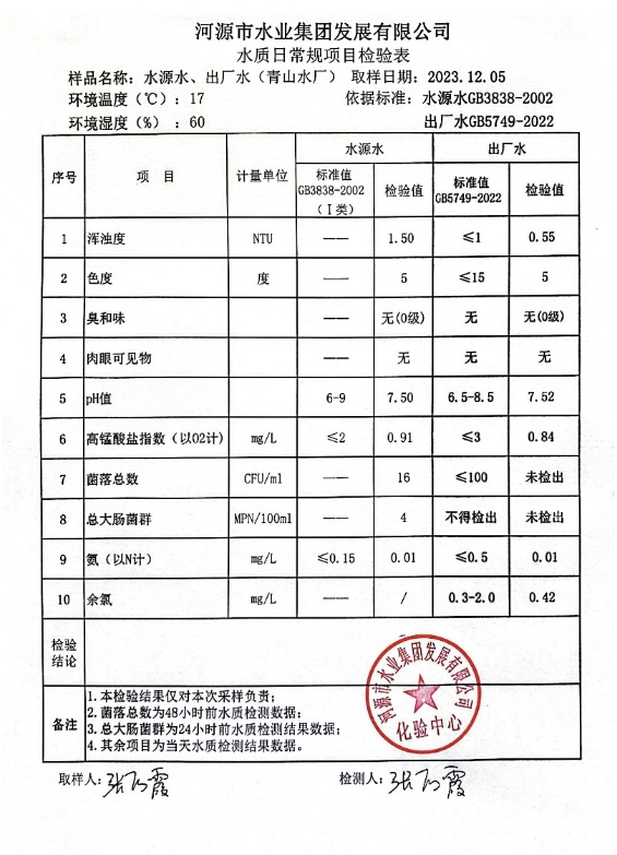 2023年12月5日水質(zhì)檢驗報告 ???