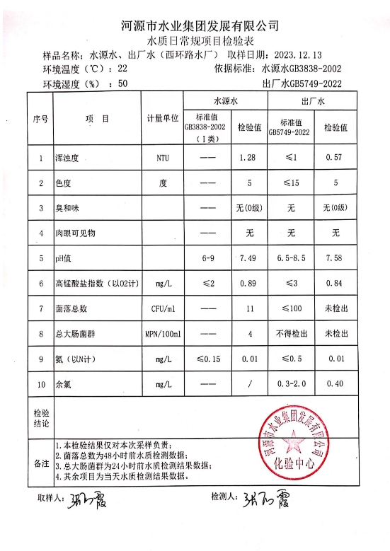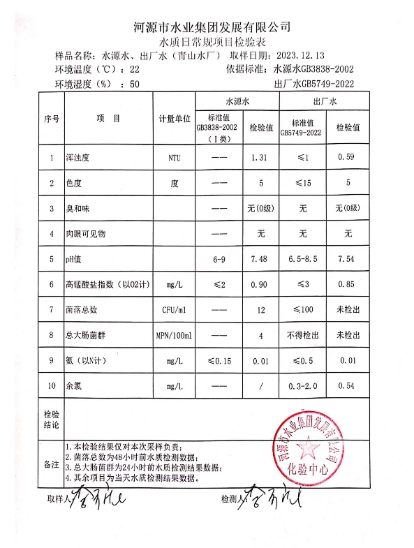 2023年12月13日水質(zhì)檢驗報告 ???