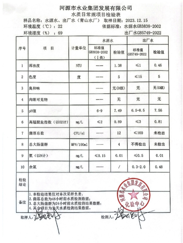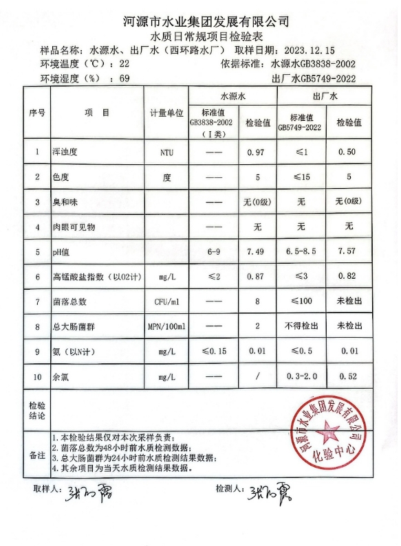 2023年12月15日水質(zhì)檢驗報告 ???