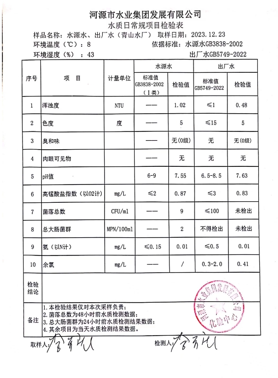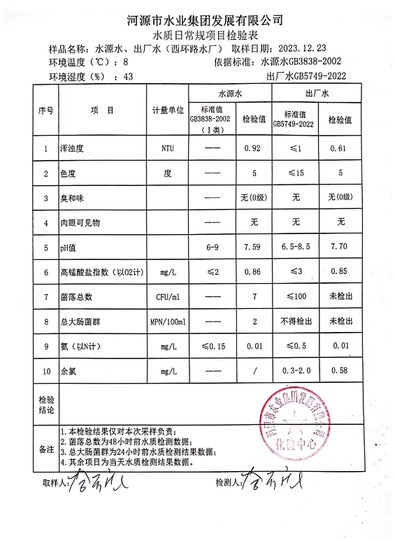 2023年12月23日水質(zhì)檢驗報告