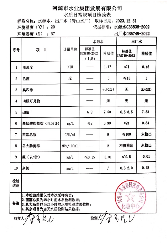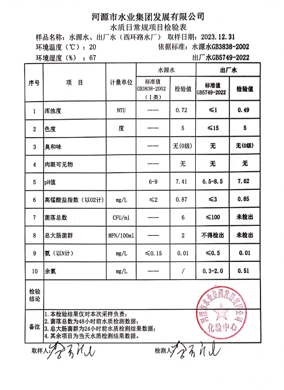 2023年12月31日水質(zhì)檢驗報告 ???
