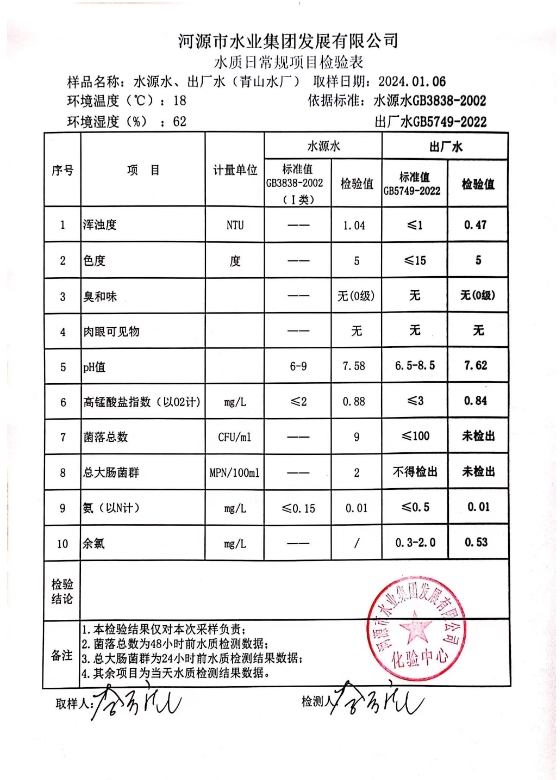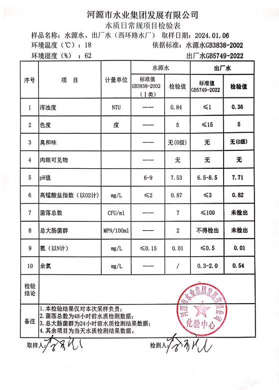 2024年1月6日水質(zhì)檢驗報告