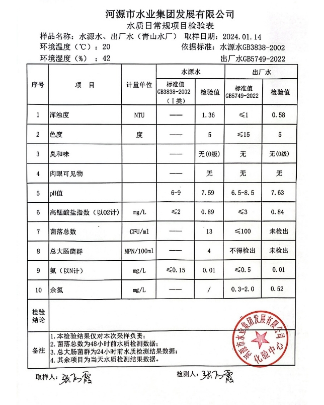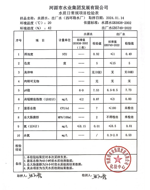 2024年1月14日水質(zhì)檢驗報告 ???