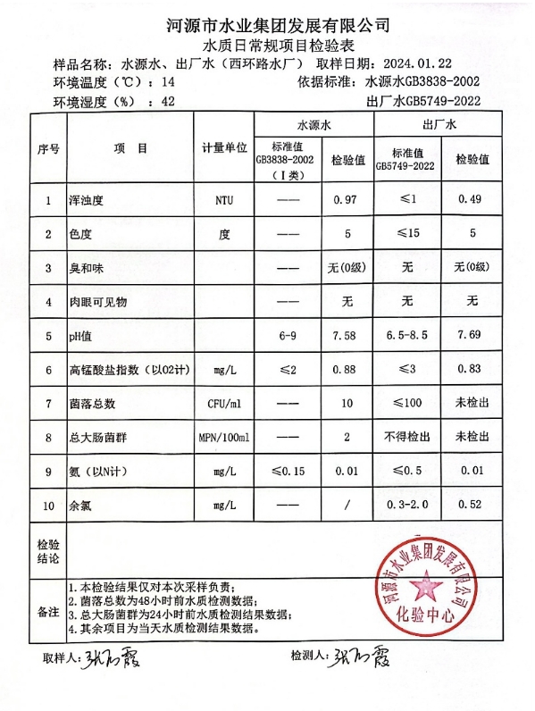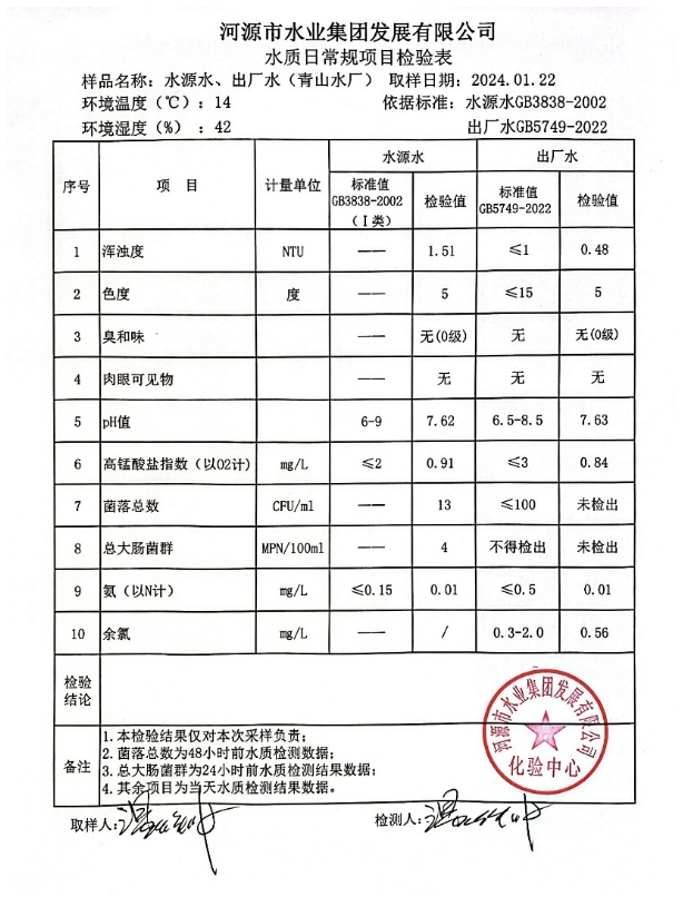 2024年1月22日水質(zhì)檢驗報告 ???