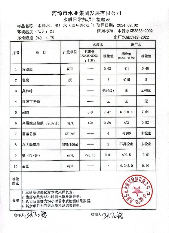 2024年2月2日水質(zhì)檢驗報告 ???