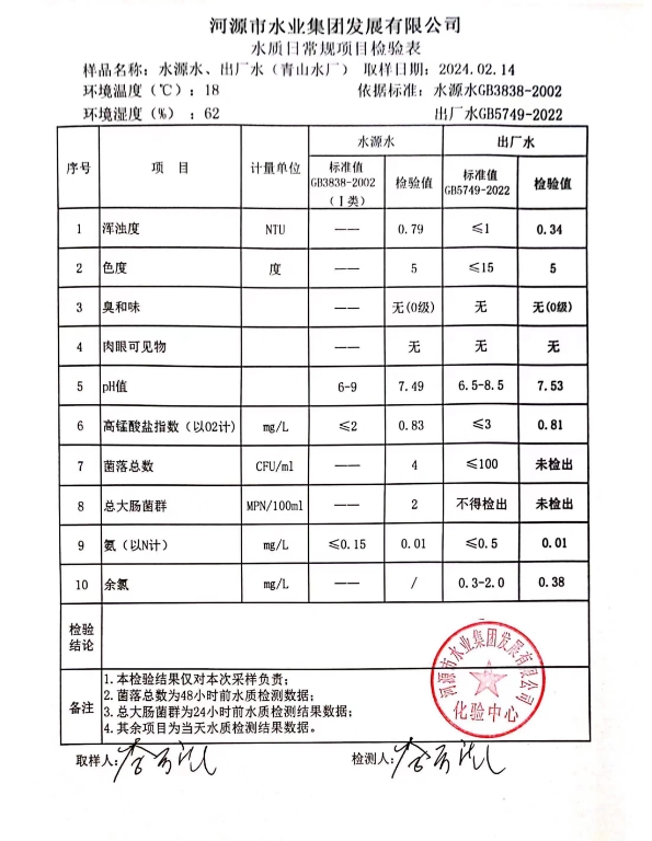 2024年2月14日水質(zhì)檢驗報告 ???