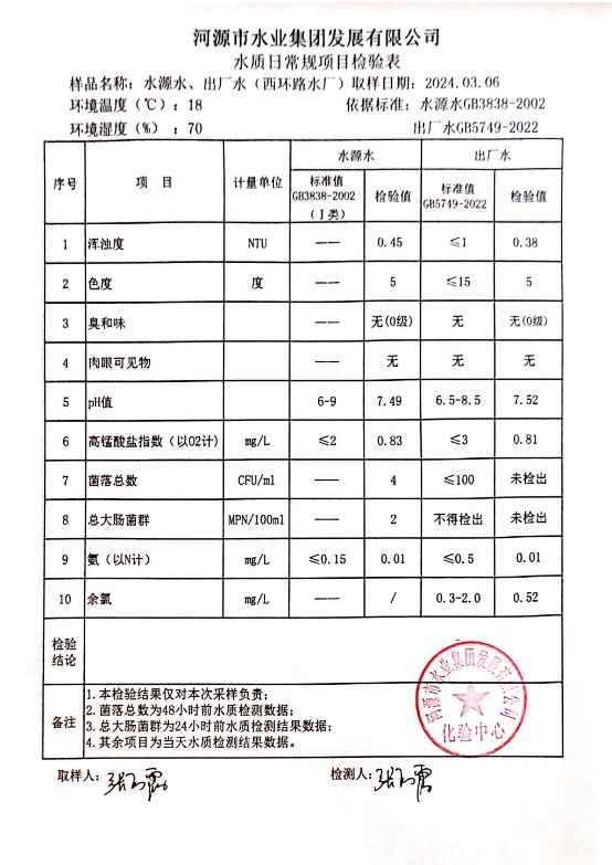 2024年3月6日水質(zhì)檢驗報告 ???