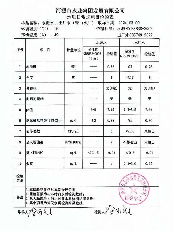 2024年3月9日水質(zhì)檢驗報告 ???