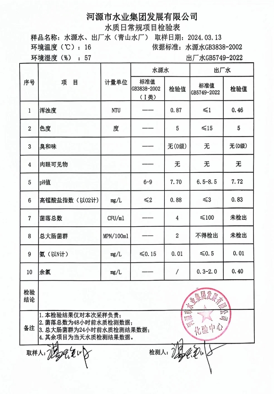 2024年3月13日水質(zhì)檢驗報告 ???