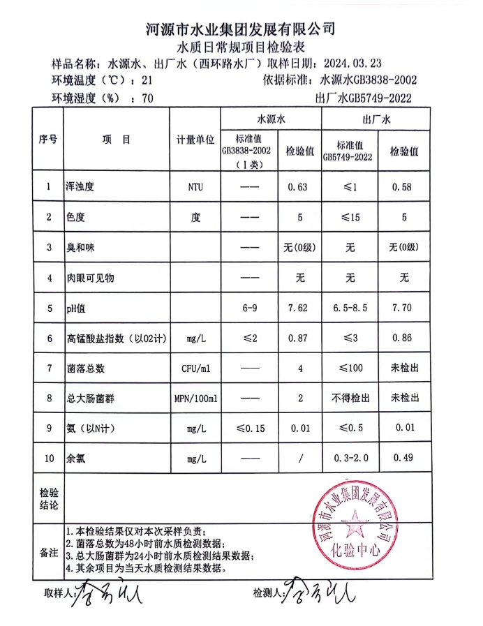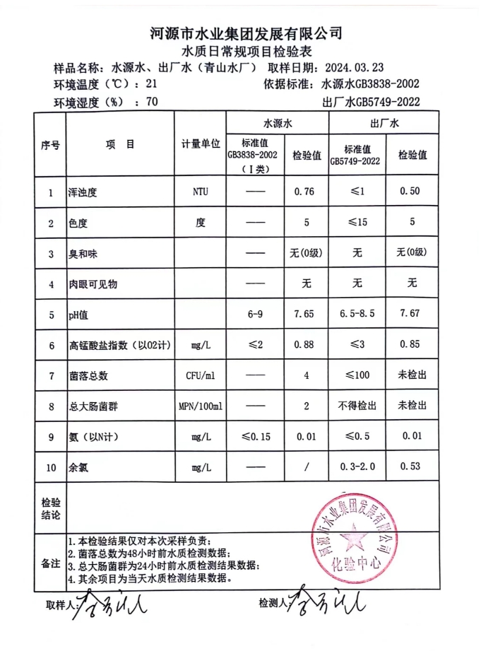 2024年3月23日水質(zhì)檢驗報告