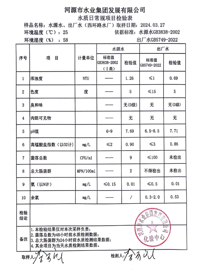 2024年3月27日水質(zhì)檢驗報告