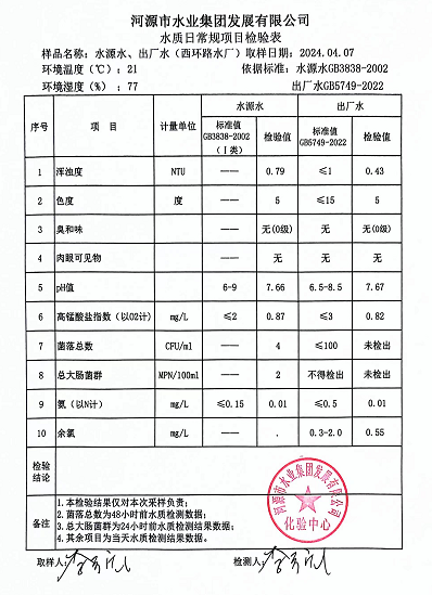 2024年4月7日水質(zhì)檢驗報告