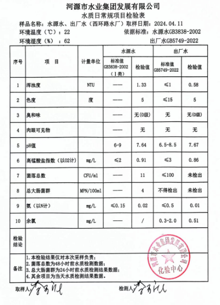 2024年4月11日水質(zhì)檢驗報告