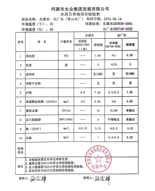 2024年4月14日水質(zhì)檢驗報告